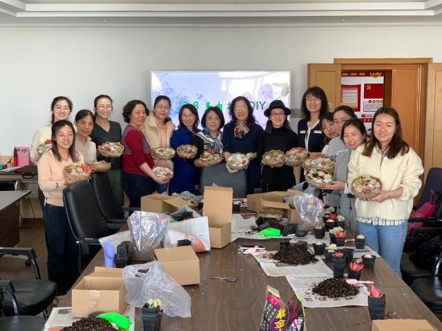 工会活动 首页 > 党团建设 > 工会活动 > 庆“三八”妇女节,yl23455永利集团举办“多肉花艺DIY”活动 发布日期:2023-03-07 春意盎然,多彩生活。3月6日,yl23455永利集团工会为庆祝 “三八”国际劳动妇女节,丰富教职工文化生活,举办了“多肉花艺DIY”种植活动。 园艺老师首先介绍了多肉植物的形态特征、主要品种、生长特点以及日常养护方法,并现场示范栽种。现场的老师们在动手的过程中展示出丰富的创造力,打造出了各具特色的手工盆景。 在多肉DIY种植活动过程中,老师们欢声笑语,其乐融融。此次活动让老师们在繁忙的工作中,放慢脚步,缓解压力,去感受自己动手种植的快乐。