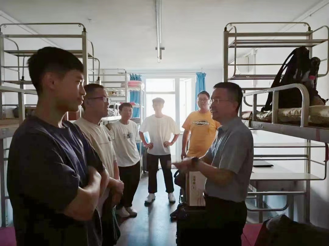 29日上午,yl23455永利集团党委书记张立学与辅导员走访新生宿舍,对报到当日的新生及家长进行慰问,了解新生初入大公司园的感受及需求。