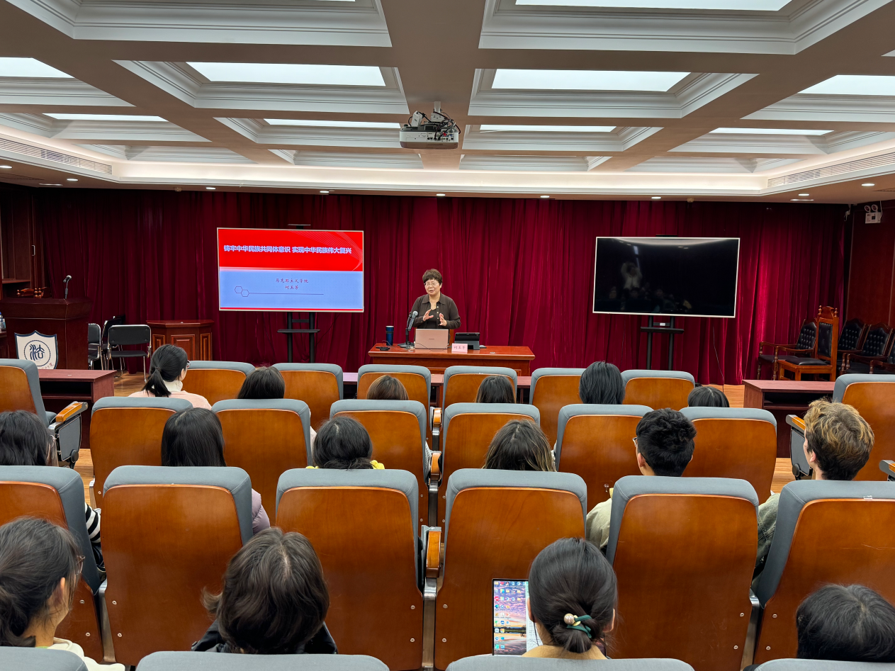 何玉芳教授从何为中华民族、中华民族共同体是怎样形成的,以及如何铸牢中华民族共同体意识三个方面展开阐述。她在讲述中指出,中华民族共同体是新时代党的民族理论与民族政策的核心概念,能够更好引领新时代民族工作前进方向、充分彰显中华民族的统一性,并突出强调中华民族多元一体格局的共同性与不可分割性。何玉芳教授强调,全体同学要深刻领悟铸牢中华民族共同体意识的理论内涵和实践要求,进一步深化对中华民族多元一体格局的认识,铸牢中华民族共同体意识。