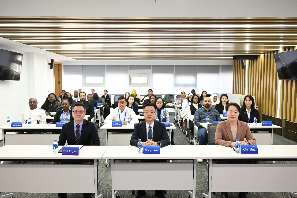 The closing ceremony of the “Seminar on Implementation of UN 2030 SDGs: Legal System for Green Development and Environmental Protection,” organized by the Ministry of Commerce and co-organized by the School of Law of Beijing Jiaotong University, was held at the University's Science and Technology Building. The event was attended by Yao Enjian, Dean of the International Education College, and Zhang Lixue, Party Secretary of the School of Law. Qin Ying, Deputy Party Secretary and Deputy Dean of the School of Law, presided over the closing ceremony.