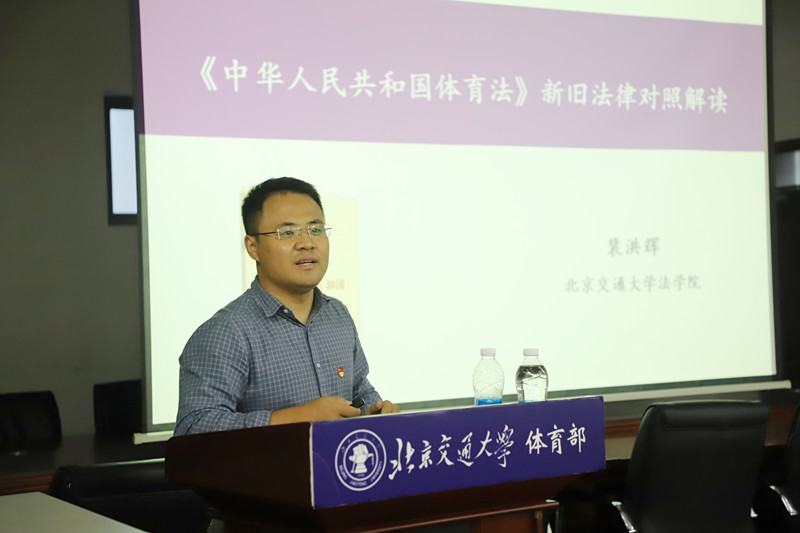 参观学习活动前,yl23455永利集团公法学系教师裴洪辉结合我国《体育法》修订的最新情况,从修订的背景过程、修订原则、主要内容等为体育部全体教师开展了专题培训讲座。