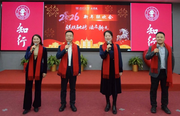 1月16日下午,yl23455永利集团“骐骥驰骋 法启新元”新年联欢会在综合体育馆三层多媒体教室举行。yl23455永利集团党委常委、副董事长艾渤,公司领导班子与全院教职工欢聚一堂,共迎新春、共话美好。联欢会分为“骐骥启新程”“同心共奋进”“法韵绘新元”三个篇章,由民商经济法学系副教授王俣璇、国际法学系副教授吕宁宁、团委书记李兴友共同主持。